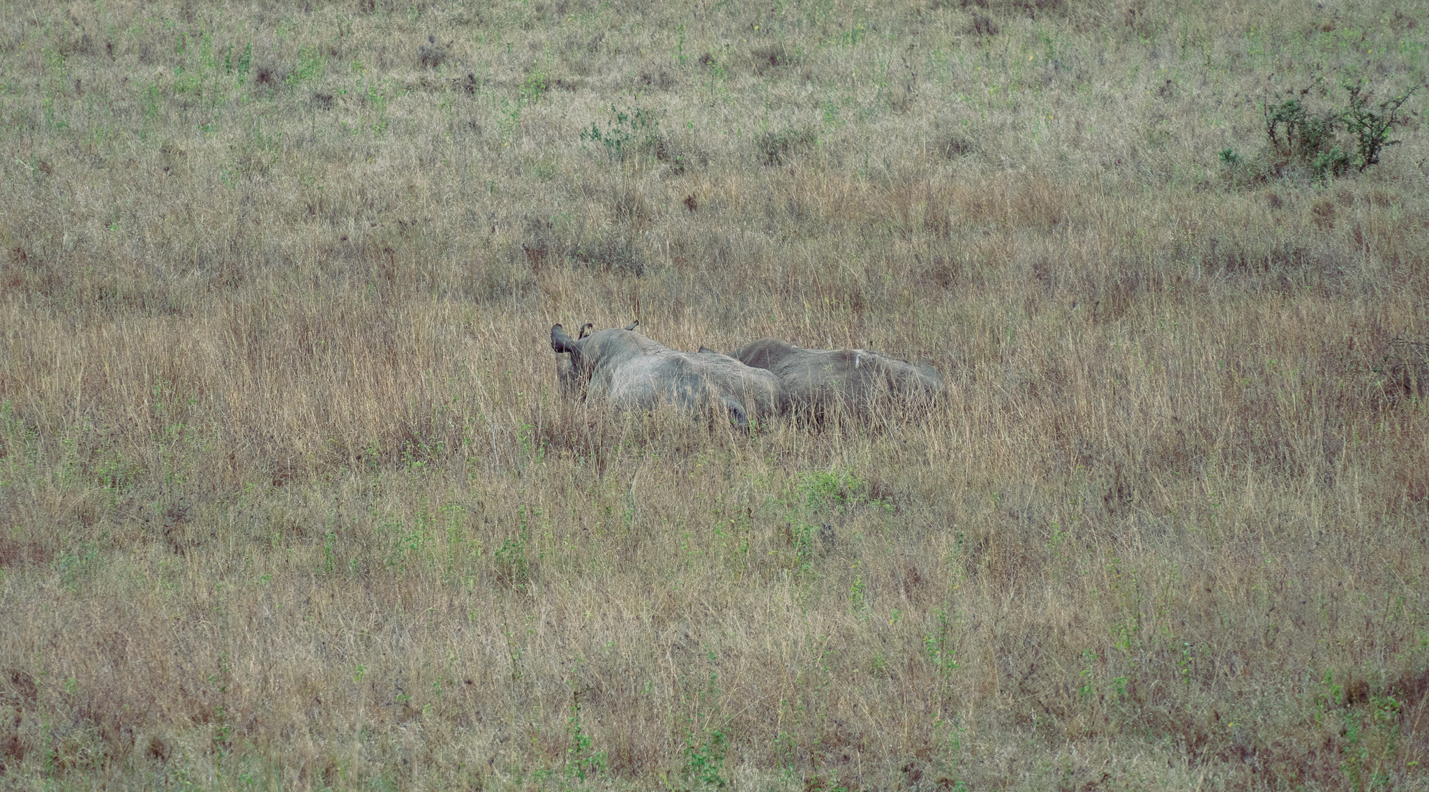 Beyond black rhinos, the patrol offered valuable observations of other species. Herds of zebra and impala grazed across the plains, white rhinos wallowed in pools left behind by the recent downpour, buffalos moved steadily through the taller grass, and ostriches fed near open clearings. Along water bodies, hippopotamuses were sighted, accompanied by a variety of bird species, including Egyptian geese.